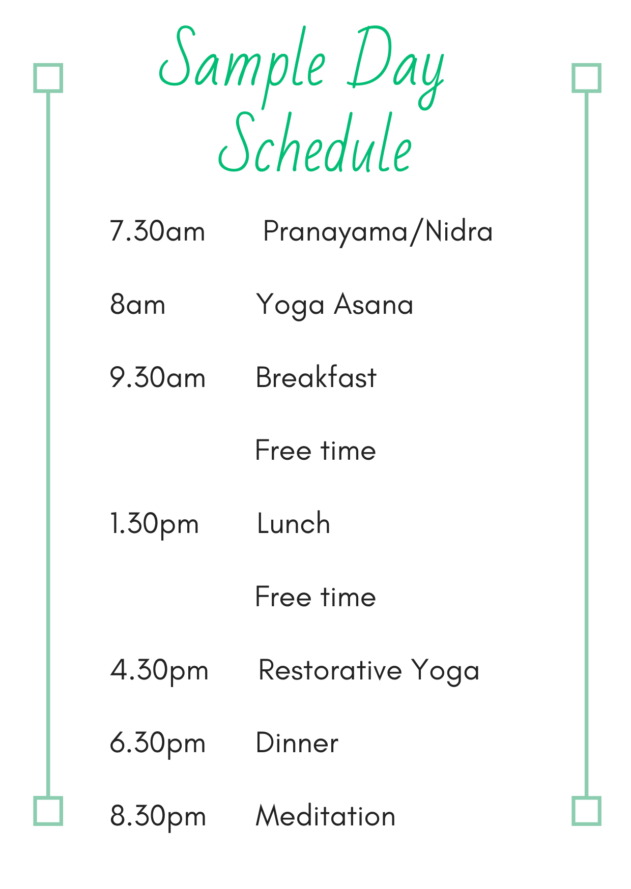 Classes & workshops will include; Gentle Flow Yoga, Gentle Restorative Yoga, Yoga Nidra & daily meditation. Mats & props will be provided but you are welcome to bring your own should you wish.